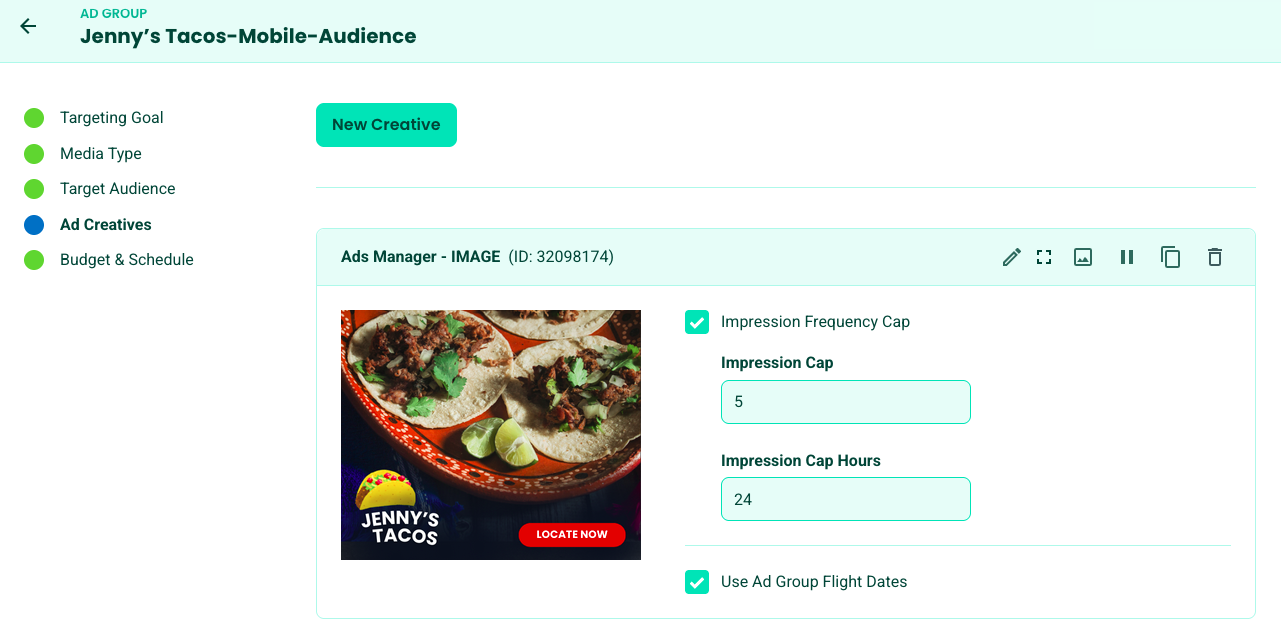- Check the box for Impression Frequency Cap (You may set frequency cap for each ad creative)