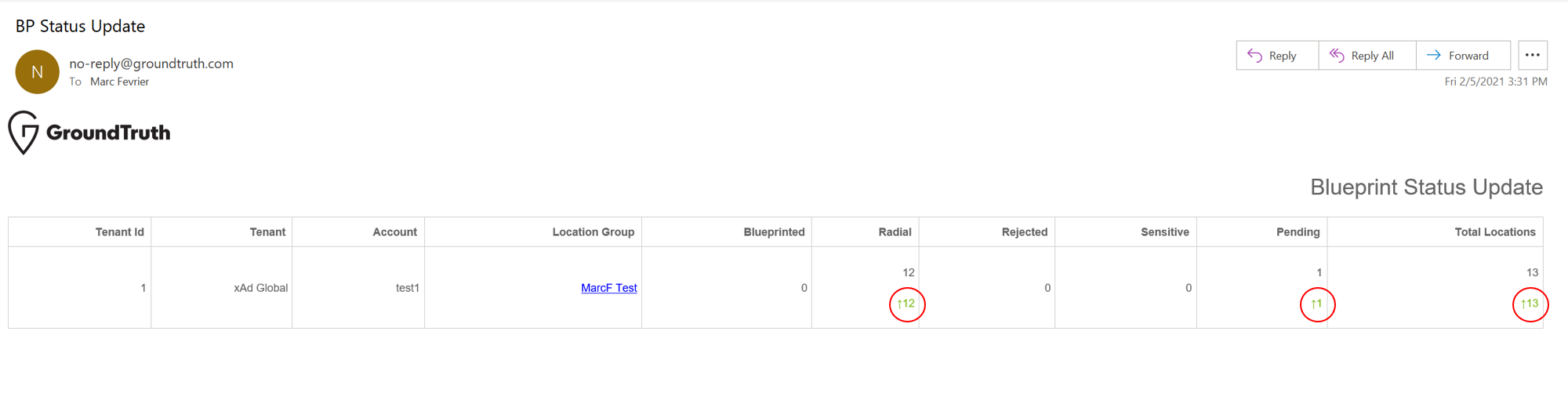 These alerts are delivered as a single, consolidated daily digest email summarizing all POI status changes from the past 24 hours across your subscribed Location Groups. You will only receive an email on days when the status changes occur.