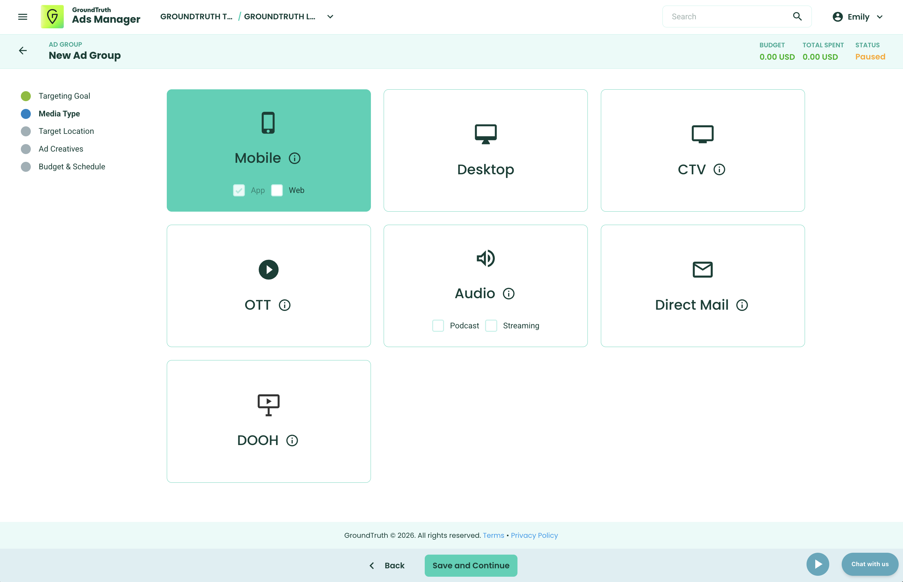 When creating a campaign or an ad group, you will be prompted to choose the device type you would like to reach your users on. If you would like to create a cross-device campaign, please create an adgroup for each device type. Note that not all targeting tactics are available for all devices. See below for details.