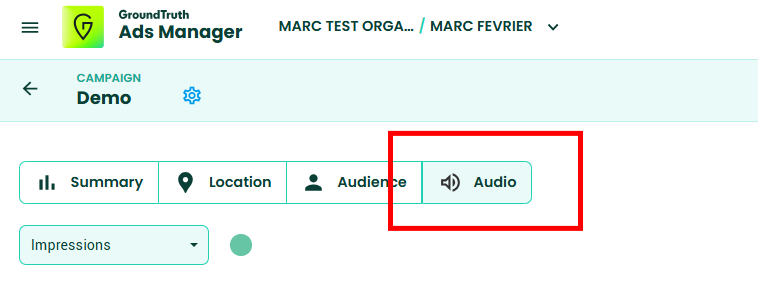 When running an audio campaign, a new Audio tab will appear in your reporting dashboard, providing access to:
