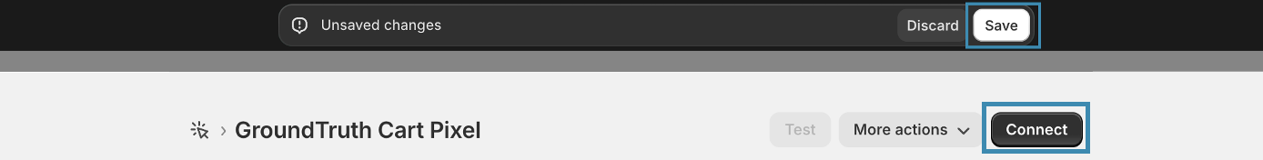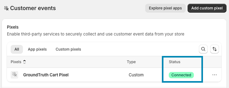 You should now see your GroundTruth Cart Pixel with a Connected status in the Customer Events page.