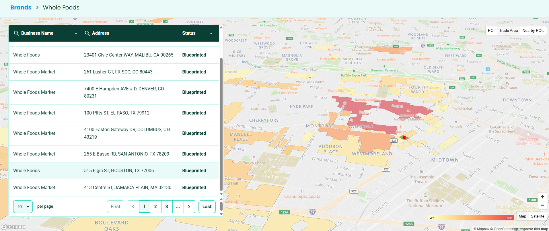 The result is a store-specific heat map that identifies geographic “trade areas” with the highest representation of visitors to that store’s location.